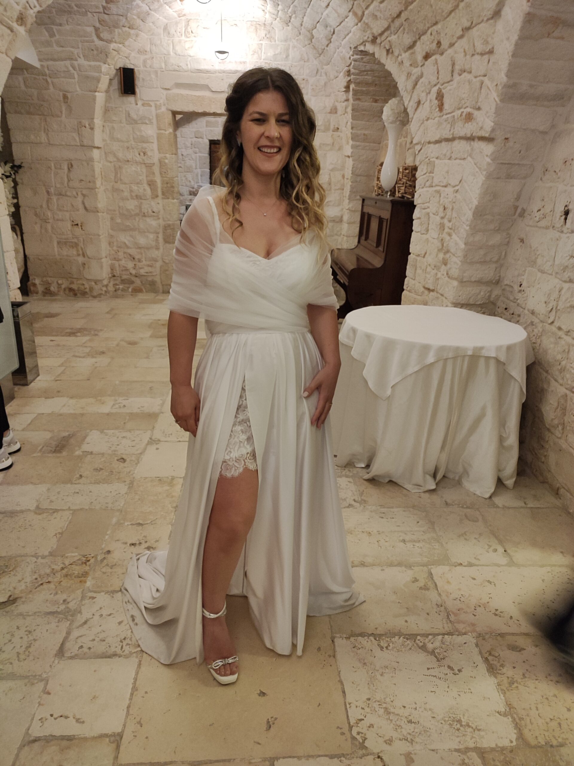I had the privilege of creating the wedding dress for a wonderful wedding in Puglia. It was a special trip from the Marche to assist Laura in her most important day!