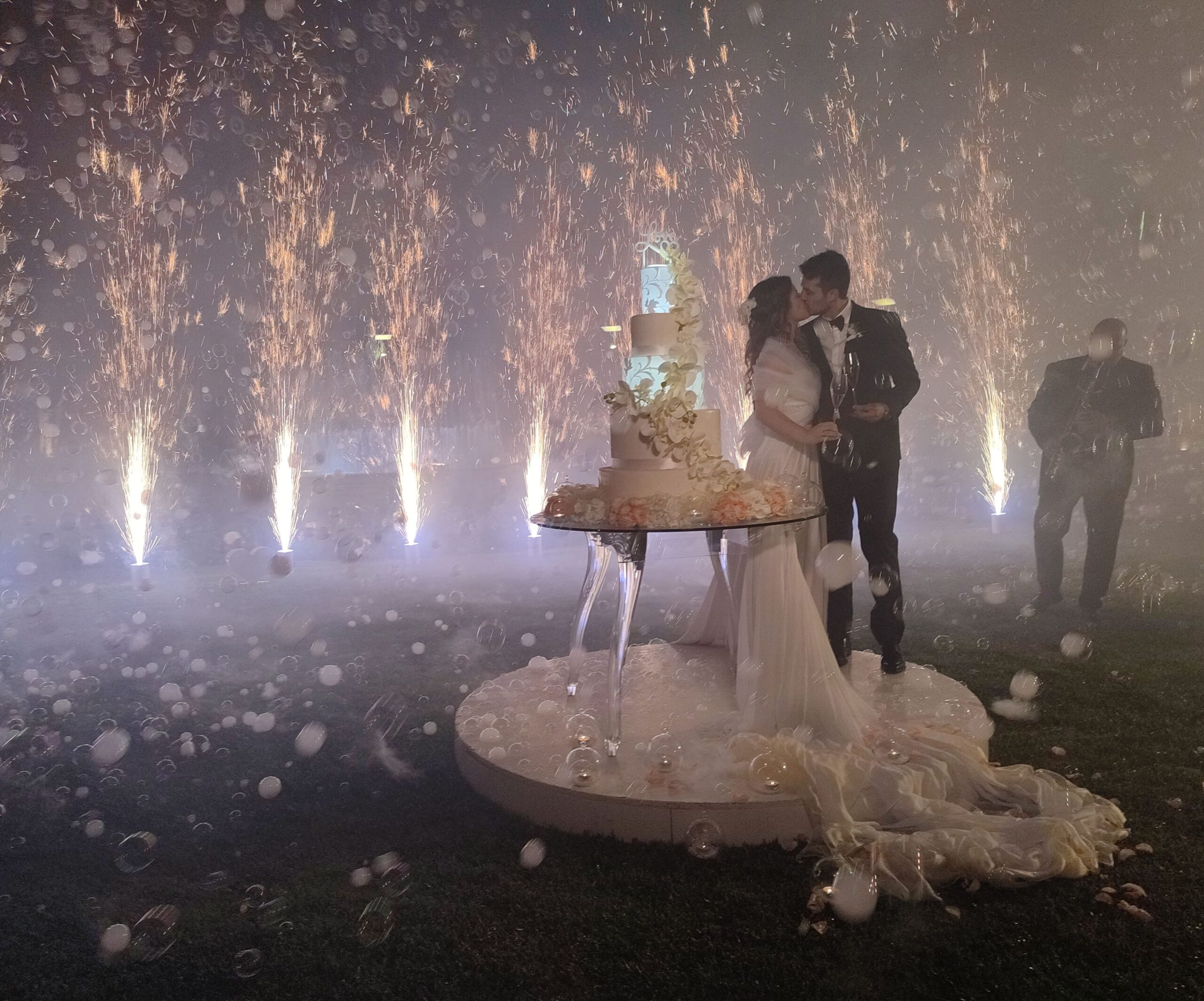 Her change of clothes was accompanied by fireworks and soap bubbles... a feast for the eyes!